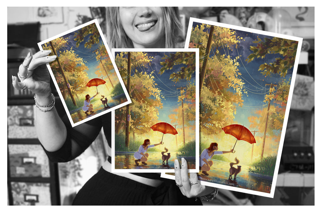 Printed with love in Kat’s studio, this fine art giclée print is reproduced on archival 210GSM rag (lightly textured paper). Each print is personally signed on the back by the artist.